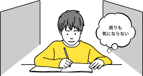 生徒一人一人をパーテーションで区切ってプライバシーが保たれた環境で学習できます。生徒の学習状況に応じて指導しますので、理解できるまで寄り添います。